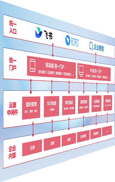 对协作平台提供支持服务,,支持企业应用与协作平台对接,,,包含组织同步、、、、消息集成、、待办集成等。。。支持目前主流的协作平台:钉钉、、企微和飞书。。